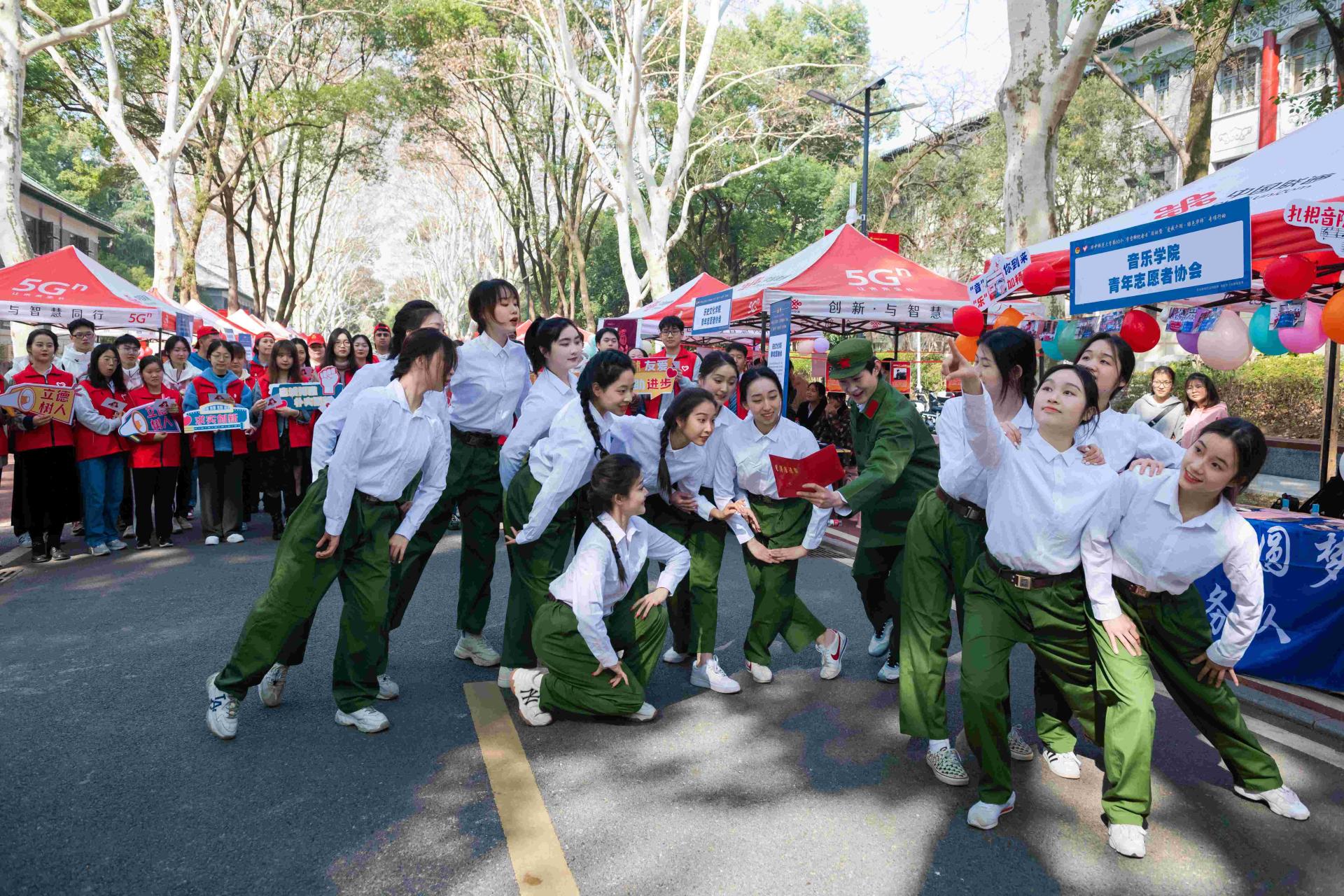 启动仪式后,志愿服务嘉年华在桂中路举行。桂中路两旁设立了“理”响青年、追“锋”青年、环保青年、树人青年、互助青年五个主题共42个展区,来自湖北省红十字会、武汉血液中心、全球最大的博彩平台互助社、洋雷锋志愿服务队、“爱我千湖”湖泊保护志愿服务队、志愿公益社团、各学部学院(所、中心)青年志愿者协会等组织,以视频展播、节目表演、喷绘墙报、讲解介绍等形式,多样化呈现“学雷锋”志愿服务典型事迹、工作经验和优秀成果。
